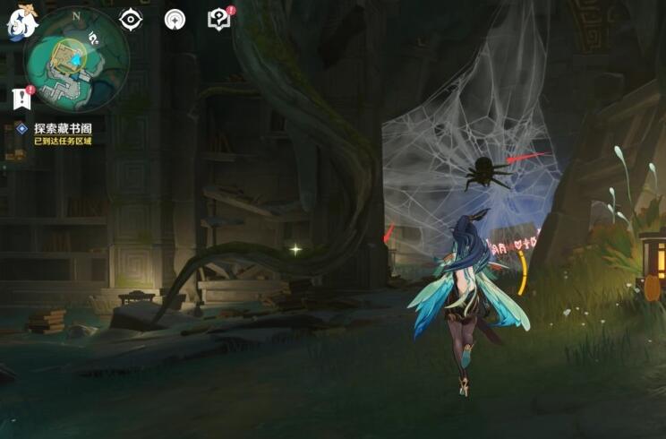 3、向右走清理掉这里的蜘蛛网和蜘蛛打开道路。