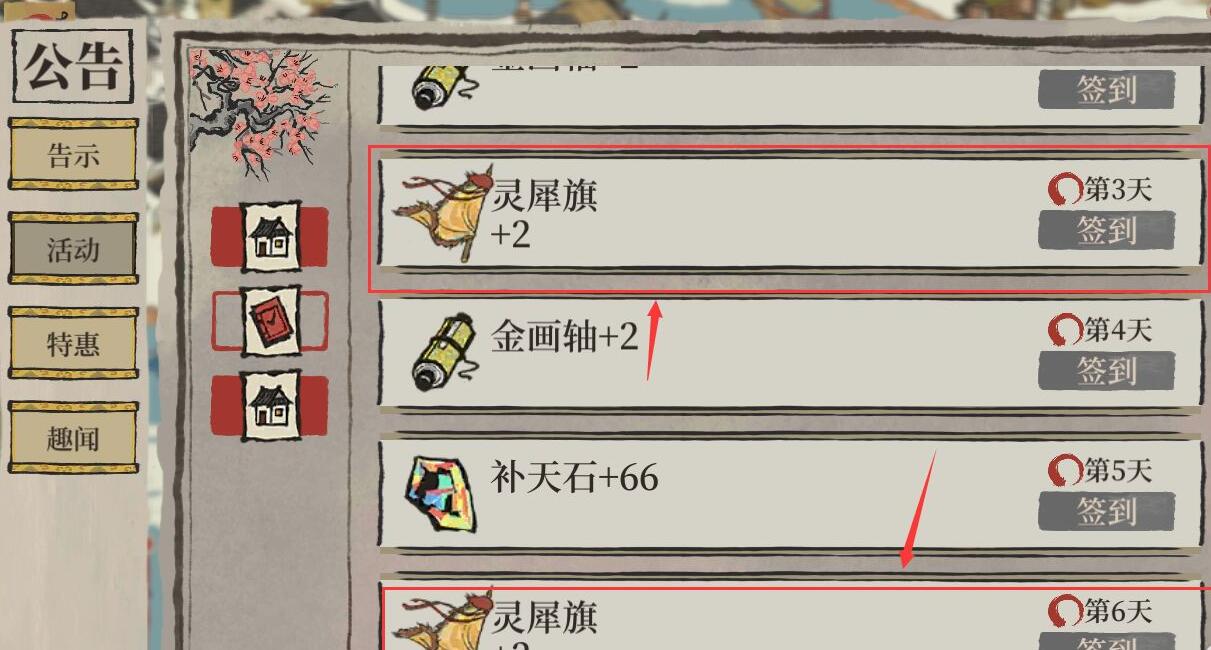 大家可以在游戏活动中,使用灵犀旗兑换金画轴、补天石、铜钱等资源。
