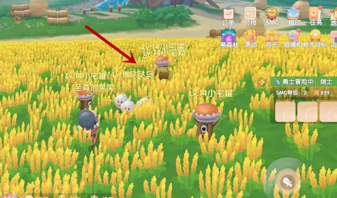 2、然后我们就能在麦田中看到哒哒鸟,靠近装备胶片,对准哒哒鸟进行捕捉;