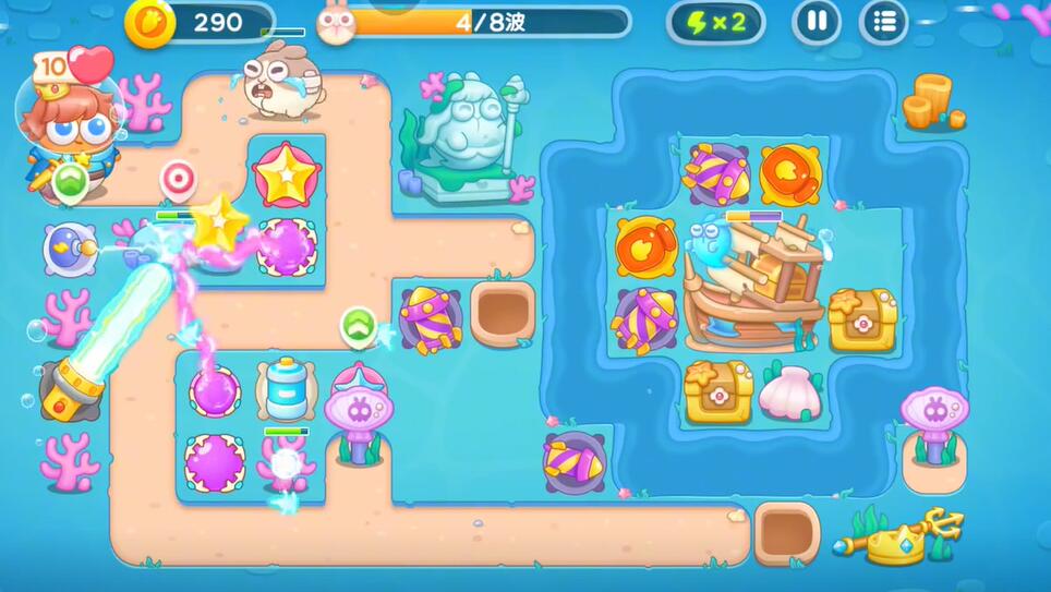 9、根据实际的情况来补充更多的防御塔,消灭掉所有的兔子,即可完成本关的挑战。