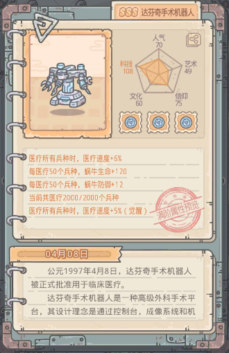 每医疗50个兵种,蜗牛生命+120