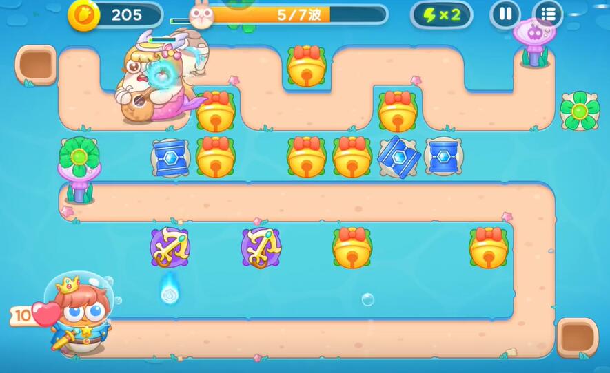 7、补充更多的防御塔清理掉所有的兔子就可以完成这个关卡。