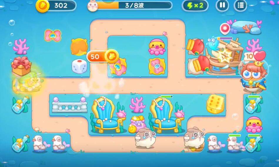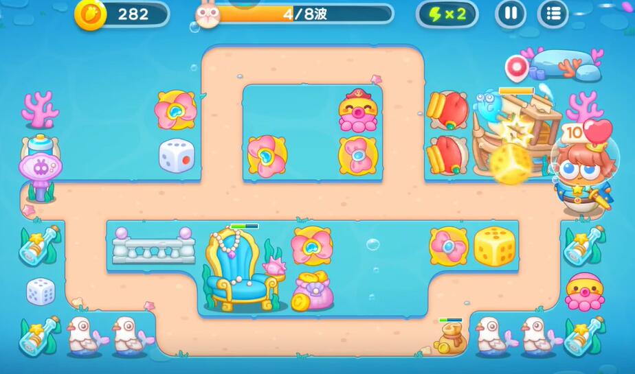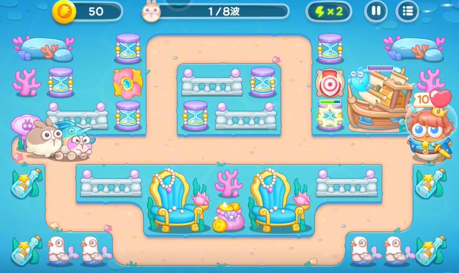 7、按照输出的需要建造更多的防御塔,清理掉所有的兔子,就可以完成这个关卡的挑战。