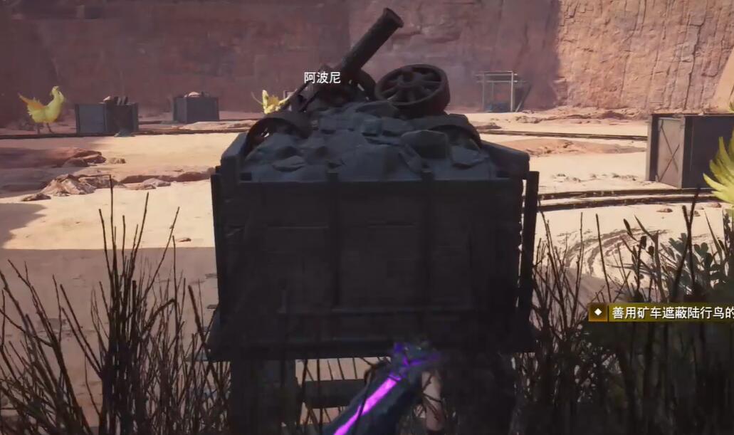 3、前往任务地点利用矿车掩护自己去捕捉陆行鸟。