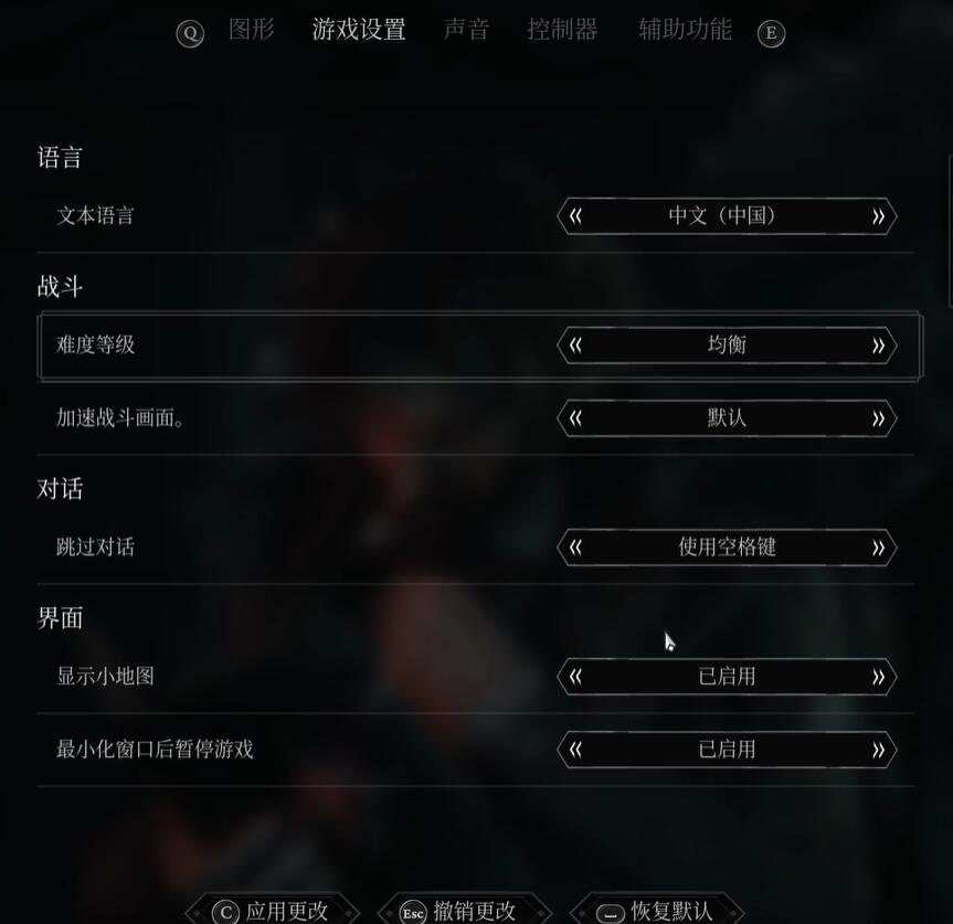 答:在【Options】的【Gameplay】中的【Language】处修改。