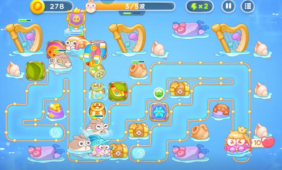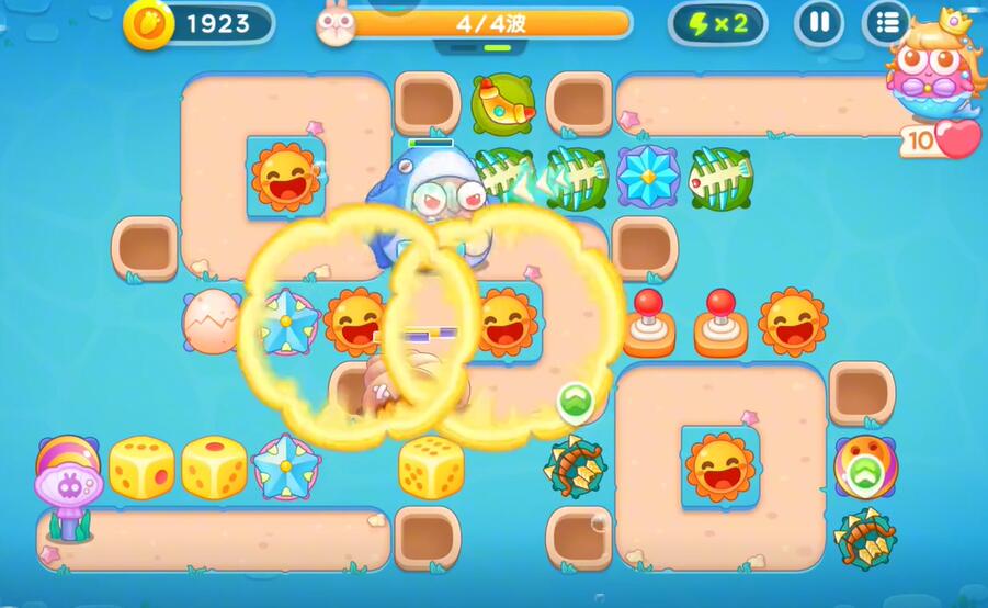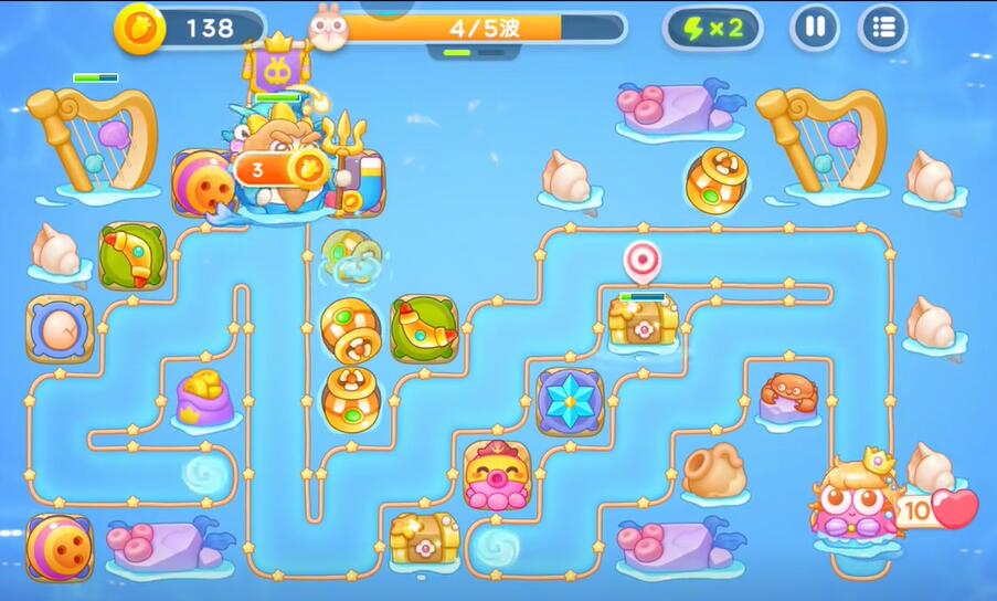 7、补充更多的防御塔清理掉所有的兔子,来完成这个关卡的挑战。