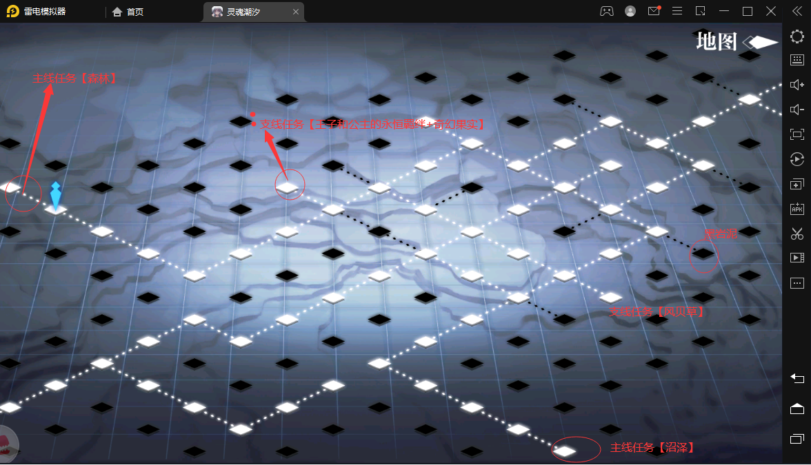 1、如图所示,这是全部地图,任务的标注地点如图所示;