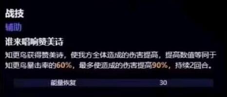 可以使我方造成的伤害提高,数值根据知更鸟的暴击率增加,持续两回合。
