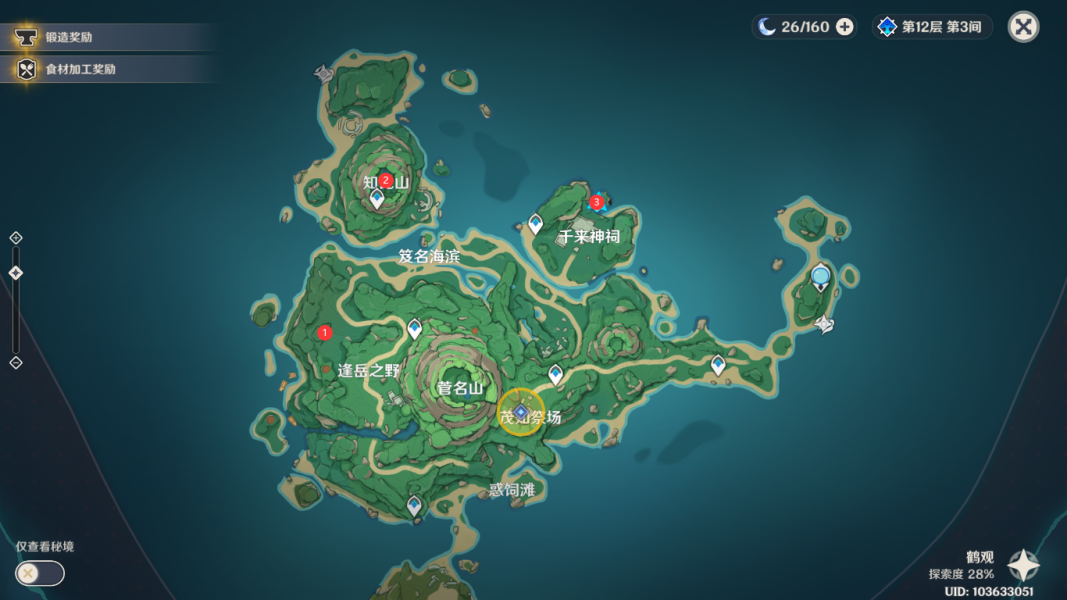打开地图,如图所示,一共三个栖木,分别在三个山上。