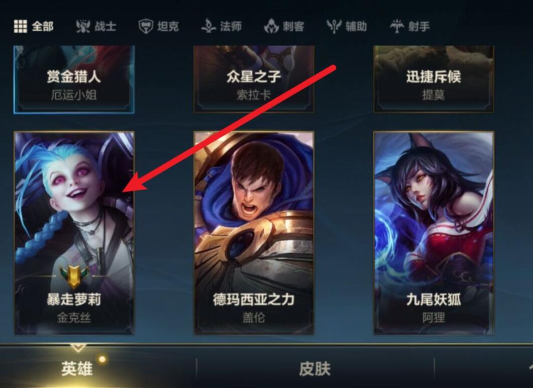 2、然后在英雄界面,任意选择需要查看的英雄;