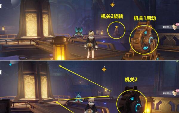 6、来到上面先将左边的机关旋转再启动机关三然后即可完成任务。