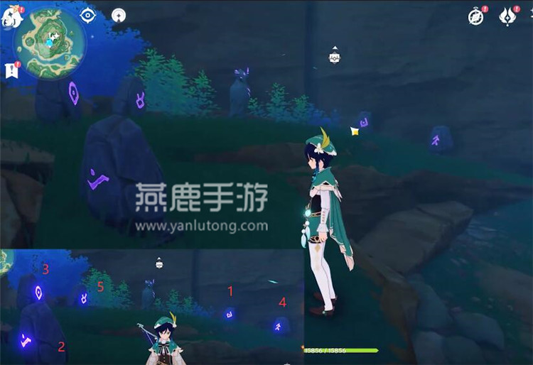 4、最后按照下图提示的顺序,来到雕像中间,依次点亮符文,即可完成解谜。