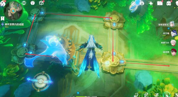 8、先使用刀鳐的能力将敌人全部击败后吸收章鱼的力量将南北两边的机关全部旋转180度。