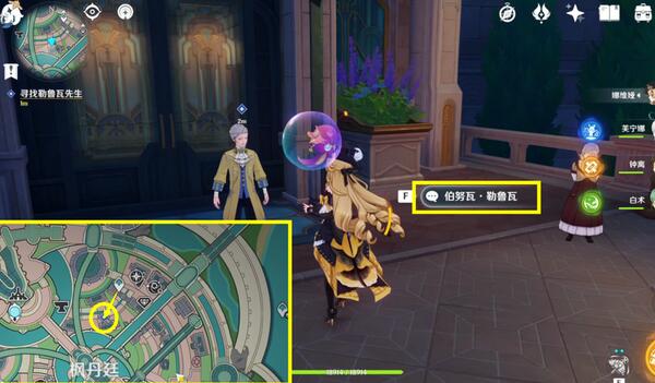 2、接着来到枫丹廷声望处,找到欧芙对话选择关于新工作接取任务。
