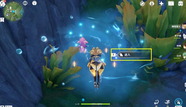 2、来到湖中垂柳右边的传送点,潜入小池塘的水下进入传送门。