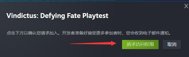 1、首先在steam上搜索Vindictus,进入游戏页面之后,在这里请求访问的权限。