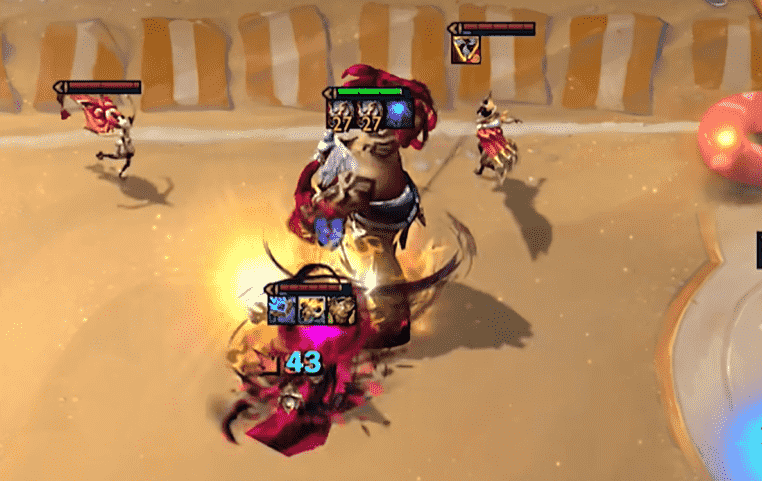 坚铁甲胄:获得350/425/3000护盾,持续3秒,对当前目标进行持续打击,每次打击会短暂地击飞敌人。他会抓取最近的敌人并将其撞向地面,对范围内的敌人造成300/450/5555魔法伤害。