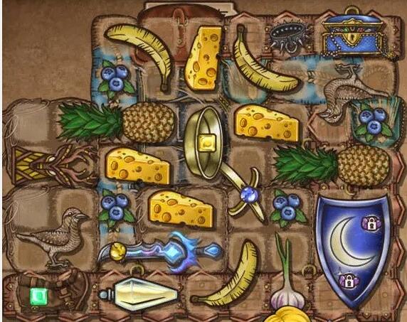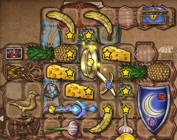 5、在锅子周围的下图所示的星星位置处要摆满食物,奶酪和蓝莓可以多拿,菠萝只需要1到2个,打算可以放在月光盾的边上,玩家也可以拿取1到2只歪脖鸟。