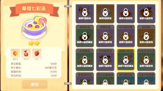 注意:想要制作蓝莓七彩汤,等级提上去。