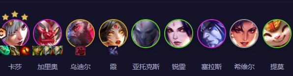 1、组成:卡莎、加里奥、乌迪尔、霞、亚托克斯、锐雯、塞拉、希维尔、提莫。