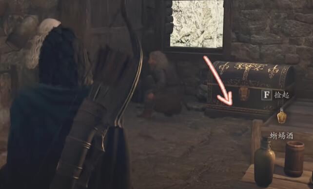 2、大家需要找到三瓶蜥蜴酒交给他,第一瓶在解锁魔弓手职业腰疼的老爷爷的家里,玩家在解锁魔弓手的时候可以顺便拿上。