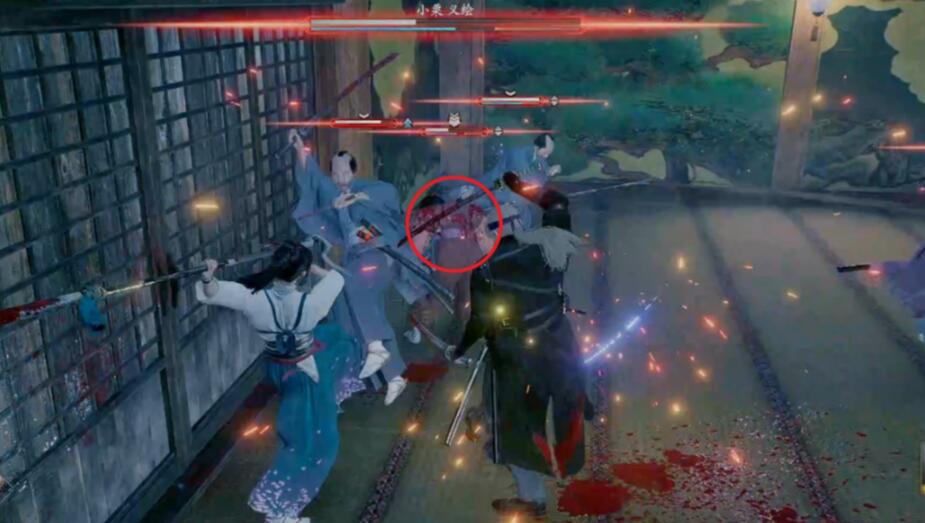 5、和这些敌人进行战斗,这里会出现一个小boss小栗义绘,他的连招很慢,玩家可以轻松的战胜他。