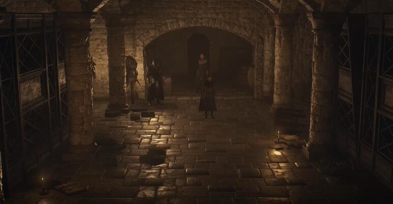 4、向下走来到监狱,右手边的第一间监狱就是法务官的牢房,玩家可以使用钥匙进入,和法务官进行交流。