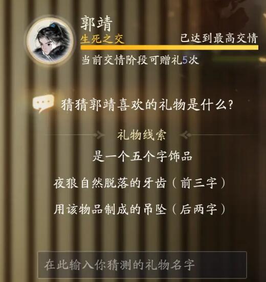 以上就是射雕郭靖喜欢的礼物答案一览职中的所有的内容,玩家可以更具问题在上方找到答案,希望可以帮助到大家。