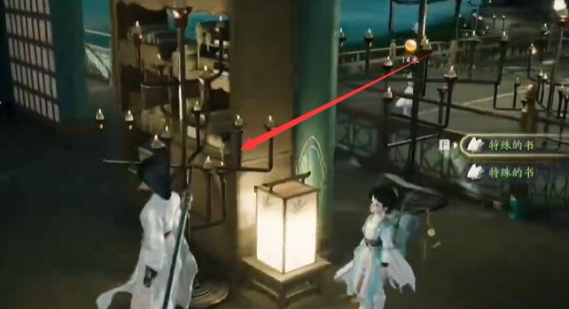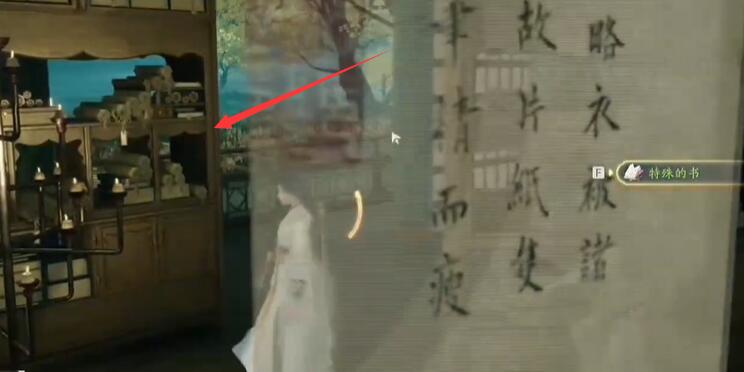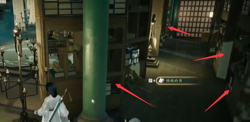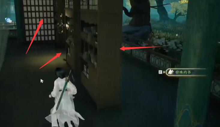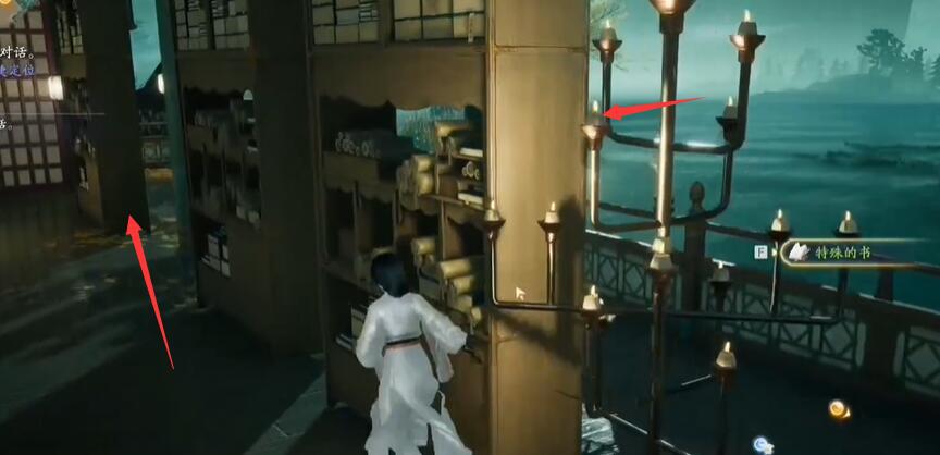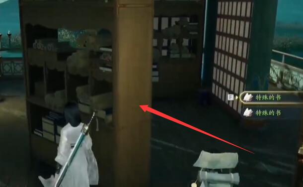 5、随后左转,在下图所示的两个书架,拾取两本特殊的书籍。