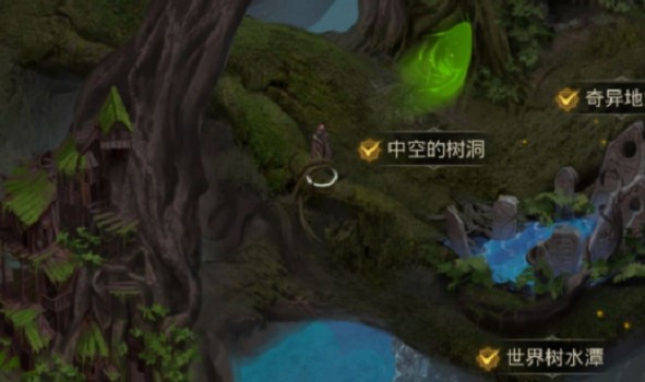首先世界树树冠位置就在如图所示的中空树洞位置,点击旁边的宝箱即可获得蓝图,需要50000力量或者魔力才可以打开。