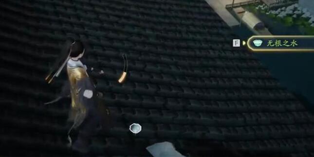 6、来到下图所标记的这个房顶的红框之处,就可以得到【无根之水】这个道具了。