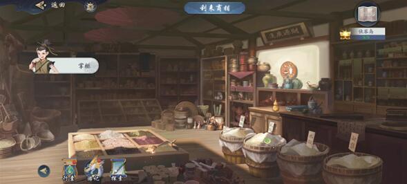 4、再来到利来商铺,点击柜台上面以及门口米堆柜台的米堆,即可获取铜钱和修为奖励。