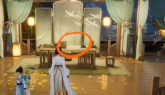 1、首先来到长庆楼二楼的房顶上面,在二楼的屏风后面收集一枚仙鹤羽。