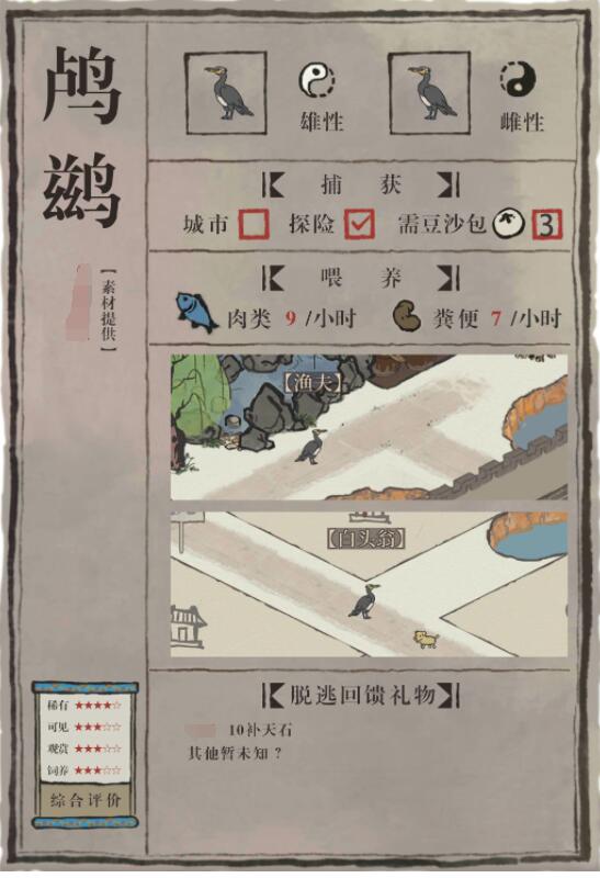 以上便是小编为大家带来的江南百景图小动物鸬鹚图鉴,希望可以帮助到大家。