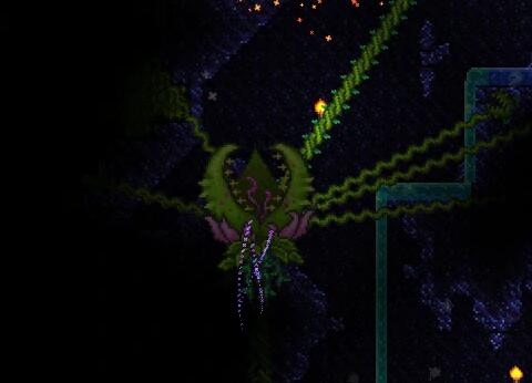 击败三个机械boss(毁灭者、机械骷髅王、双子魔眼),会出现一个世纪之花球茎随机落在地下丛林中,如果球茎其中一个被摧毁,那么世纪之花也就出现了。