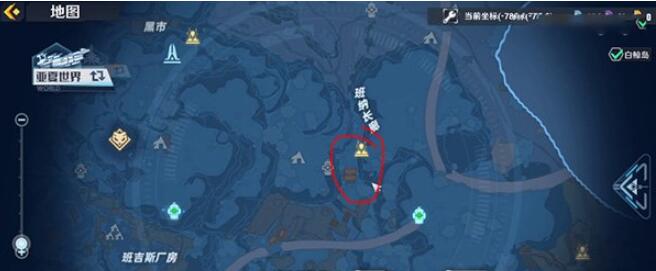 班吉斯工厂有点大了,采集非常的慢了,这里推荐去班纳长廊的下方,如下图所示。