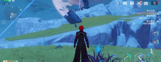 2、爬山就能看到巨兽的所在的地方了,我们飞过山脉到达巨兽位置、