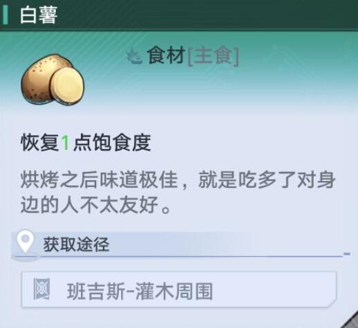 幻塔手游即将公测了,在幻塔游戏中烹饪料理是强化角色的关键道具,其中有一个任务是寻找白薯,很多玩家不知道白薯在哪,下面为大家带来了幻塔白薯位置介绍,一起来看看吧。