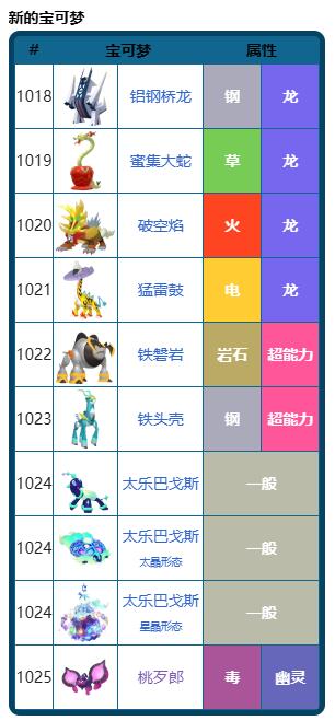零之秘宝:蓝之圆盘新增前代宝可梦: