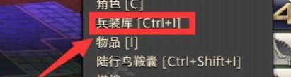 2、点击打开兵装库,或按ctrl+c打开。