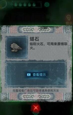 2、我们回小路在路上拿燧石,点击城隍庙外锅,在石堆中找半张相片,用燧石点火。
