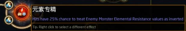 元素专精中点出“25%几率击中以抗性负数进行结算”,有效提升攻坚强度,哪怕没有诅咒也影响不大
