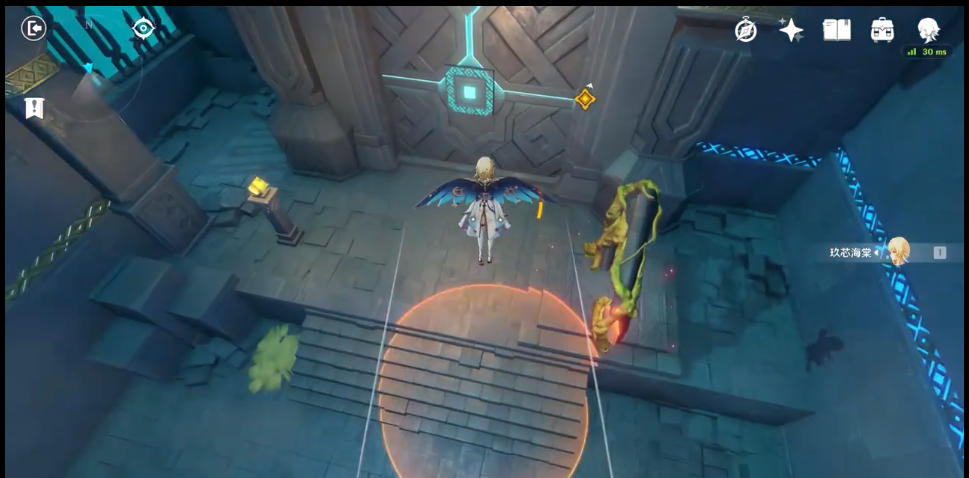 1、借助下图的风场起飞,并往下投掷炸弹,炸死所有小怪之后即可开启第一扇门。