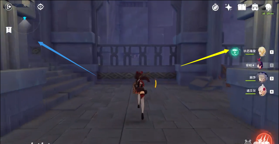 黄色箭头指向位置有宝箱,记得拿,拿完再沿着蓝箭头继续走。