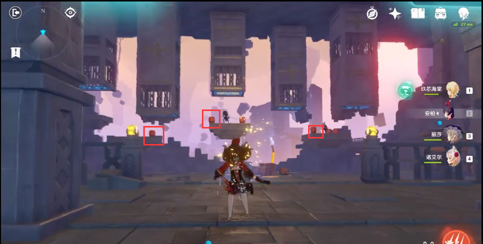 地上的怪建议使用诺艾尔,大招可以防御,大剑伤害也很大,上面的怪依旧用安柏射杀。