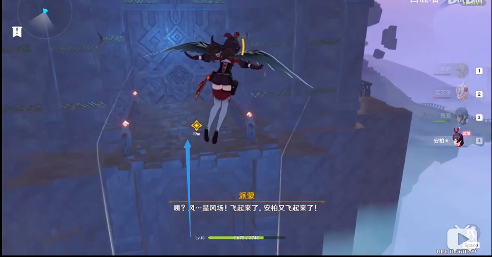 6、大门开启之后,会进行一段对话,对话完之后,不要怕,往对面飞。快到的位置有个上升气流,会将你托起来。