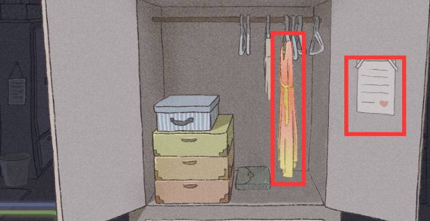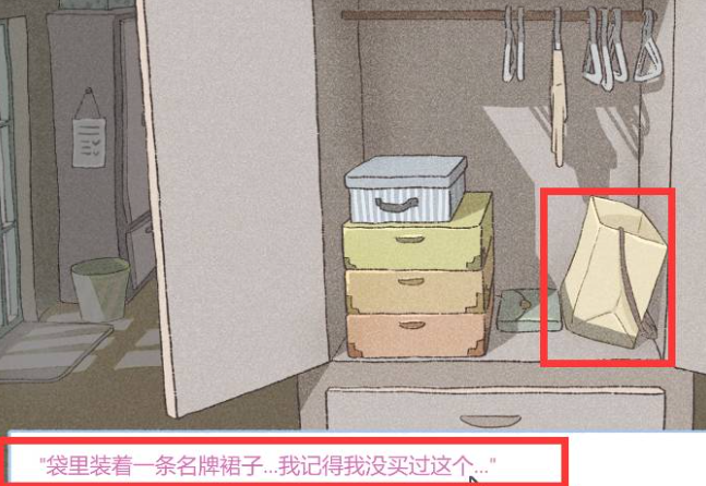 4、之后进入房间,打开衣柜,右边的袋子有新裙子,点开下面的柜子,得到一个箱子。