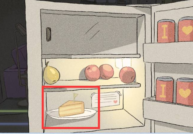 2、打开冰箱拿到盘子、芝士蛋糕以及钥匙。