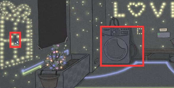 6、在洗衣机拿到的密码在墙壁上的礼物盒灯中间拿到项链。