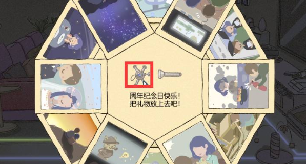 7、将上面得到的数字填入在客厅的盒子,即可开启,打开后会发现是周年纪念礼物。